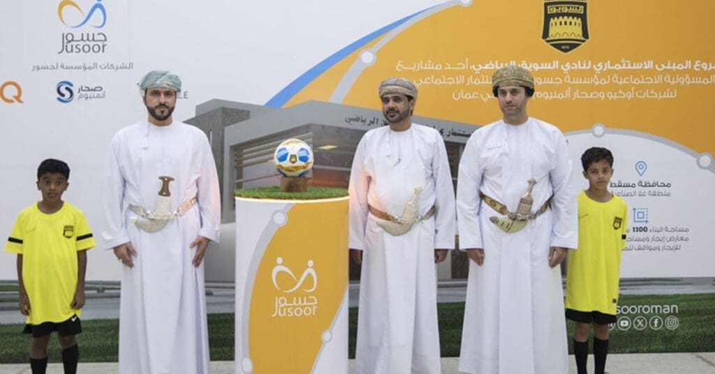 احتفلت مؤسسة جسور اليوم بوضع حجر الأساس لمشروع المبنى الاستثماري لنادي السويق الرياضي بولاية السويق بمحافظة شمال الباطنة بتكلفة قدرها مائتا ألف ريال عُماني تحت رعاية سعادة الشيخ عيسى بن أحمد المعشني والي السويق، وبحضور أعضاء مجلس إدارة نادي السويق وإدارة مؤسسة جسور وعدد من ممثلي الدوائر الحكومية والشركات المموّلة للمشروع.
