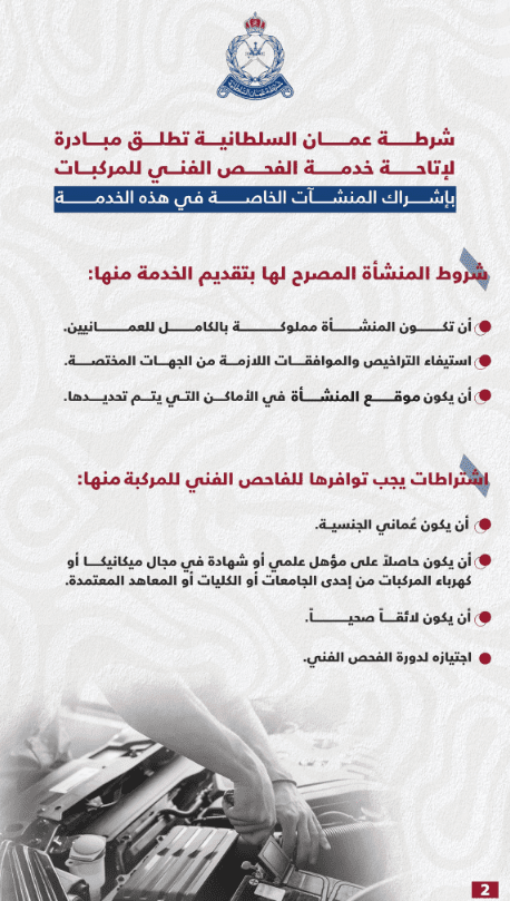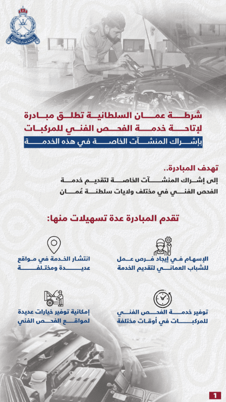 شرطة عمان السلطانية تصدر ضوابط تقديم خدمة الفحص الفني للمركبات