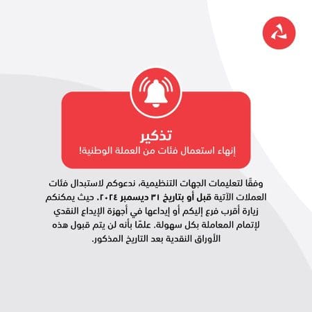 الاقتصاد يرجى استبدال هذه الفئات من العملات النقدية قبل أو بتاريخ 31 ديسمبر 2024 11 شهر ago مسقط – السبلة يرجى استبدال هذه الفئات من العملات النقدية قبل أو بتاريخ 31 ديسمبر 2024 Post navigation Previous أكثر من 1100 وظيفة شاغرة بالوحدات الحكومية.. تعرف عليهاNext بيانٌ مشتركٌ بين سلطنة عُمان ومملكة بلجيكا بمناسبة زيارة جلالةِ السُّلطان المعظم
