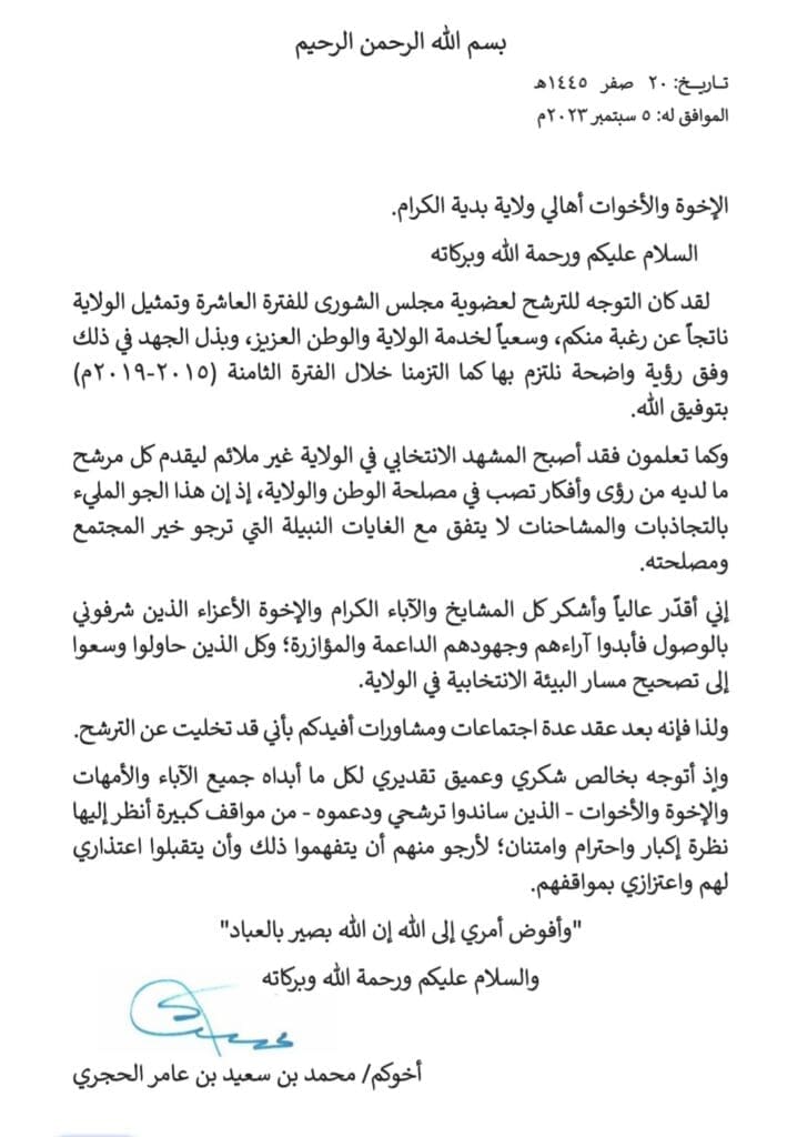 — محمد بن سعيد الحجري (@msaalhjry) September 8, 2023
