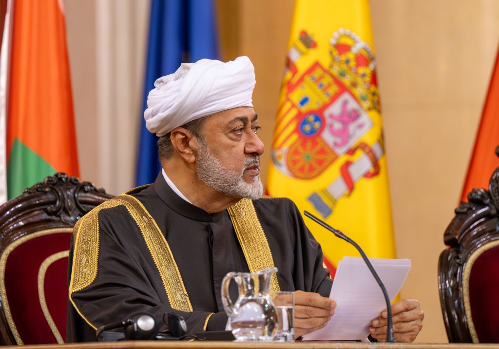 جلالته: “كما نُقدّر حرصكم على التّعاون في مجال الطاقة، وإننا لنؤكّد استعداد سلطنة عُمان لتوسيع الشراكة في مشاريع الهيدروجين الأخضر، مستفيدين من الخبرات الإسبانية المتميزة في هذه المجالات، وبما ينسجم مع رؤية عُمان ۲۰٤۰ الرامية إلى تنويع الاقتصاد والتحوّل نحو اقتصاد أخضر مستدام”.
