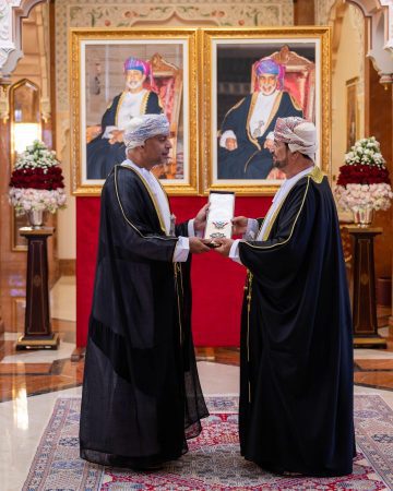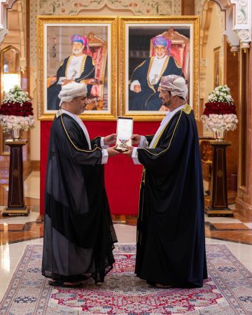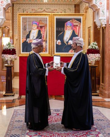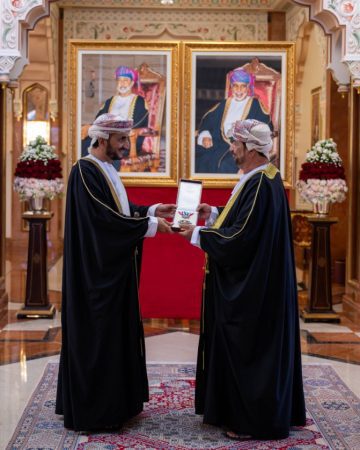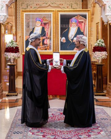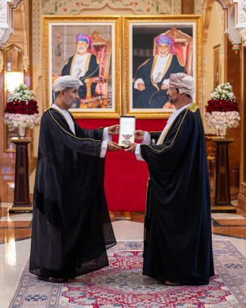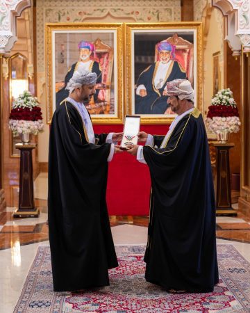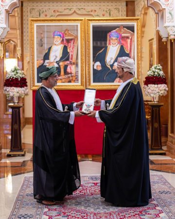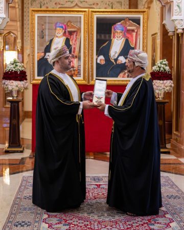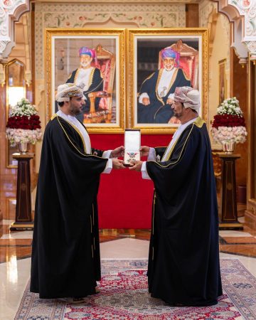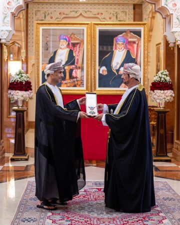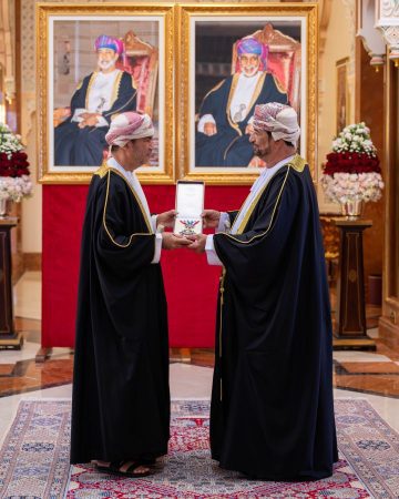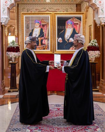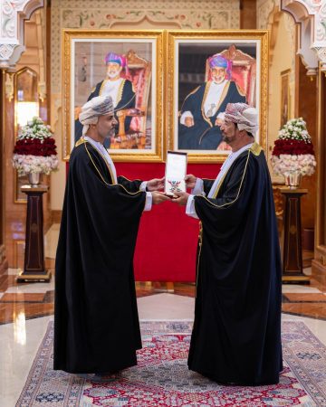 تفضل جلالةُ السُّلطان هيثم بن طارق المعظّم /حفظهُ اللهُ ورعاهُ/فيمنحُ وسامَ الإشادة السُّلطانية من الدّرجة الثّانية لعددٍ من أصحاب الفضيلة والسّعادة؛ تقديرًا من لدن جلالتِه /أيّدهُ اللهُ/ لجهودهم الطيّبة في أداء واجبهم الوظيفي، وتزامنًا مع احتفالات البلاد باليوم الوطني المجيد.