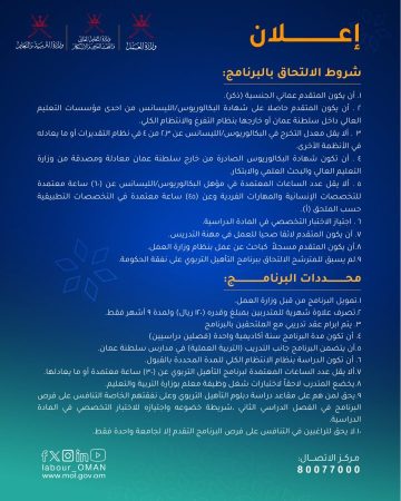 وزارة العمل تعلن عن فرص تدريبية في برنامج التأهيل التربوي