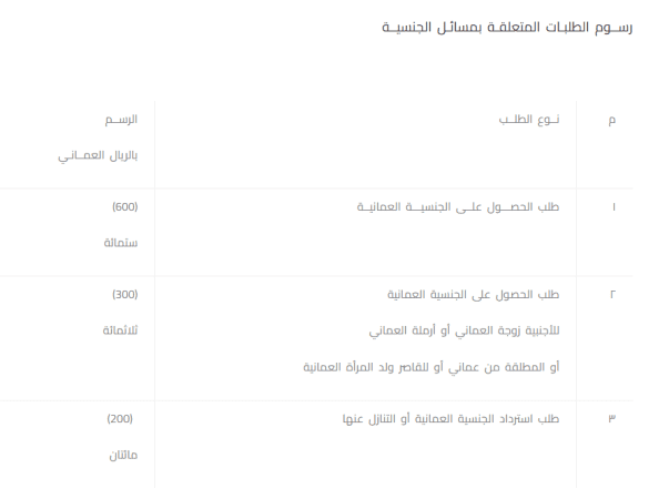 يجب على الأجنبي زوج العمانية مقــدم طلــب الحصول على الجنسية العمانيـــة تقديــــم المستندات الآتية: